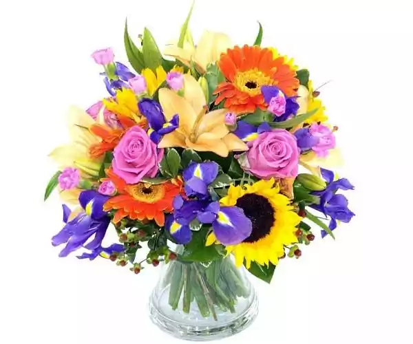 From our fresh Variety Flowers range we are pleased to bring you... Burst of Spring. Fresh and vibrant, this eye-catching flower bouquet is bursting with seasonal colours and will brighten up any home or office or would also make for a marvellous gift that anyone would be thrilled to receive._x000D_