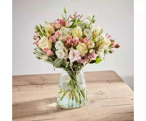 - The delicate pink against creamy white in the Rosetta bouquet remind us of the blushed cheeks of a pre
