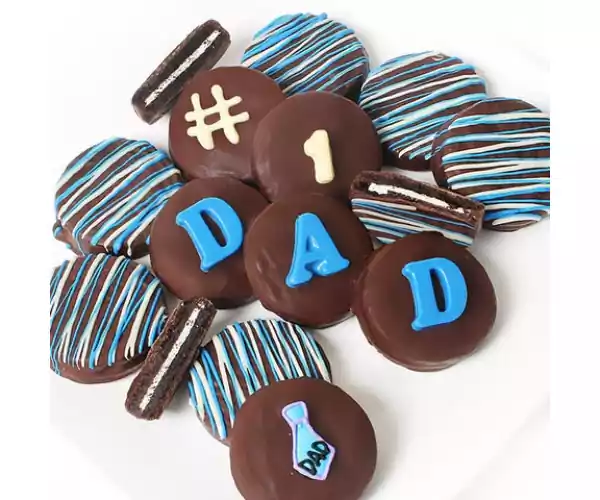 Show dad how much you cherish him with a fun gift! Express your love with a unique chocolate and biscuit arrangement that says it all! Surprise your dad with Oreo Biscuits that have been dipped in rich Belgian chocolate that spells out "Dad #1'.