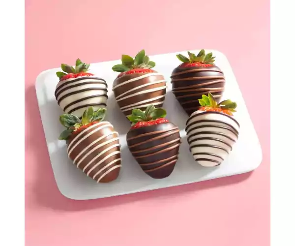 Send a little something sweet! This set includes a half dozen milk, dark and white chocolate confection dipped strawberries. Each gift includes a greeting card you can personalize.