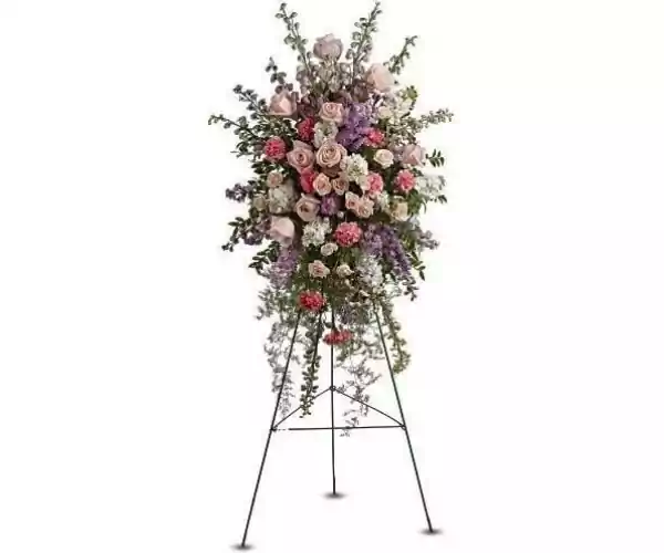 Grand Funeral Stand compiled of lovely roses and carnations in subtle colors. Convey deepest love, sympathy, and heartfelt support with this phenomenal creation carefully crafted by our specialist florist.