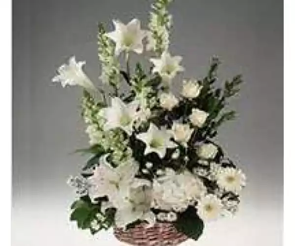 White Floral Arrangement With Lilies, Roses And Saint Vincent