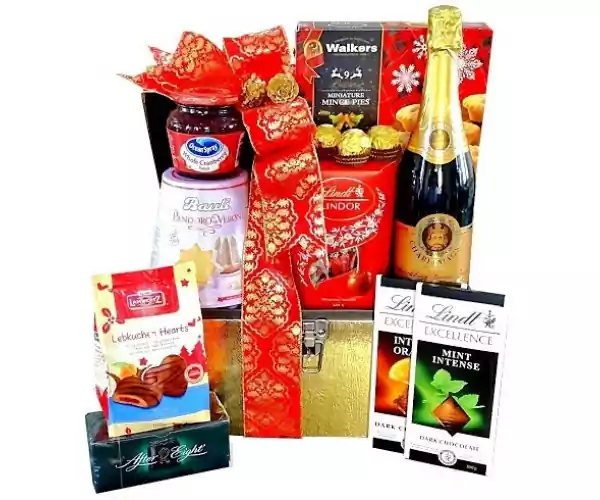 Send your Warm Greetings to friends & family or Thank your Business Associate for the prosperous year this festive season with this Gift Box! Featuring an Elegant chest box, stuffed with Christmas goodies including:Sparkling Grape Juice