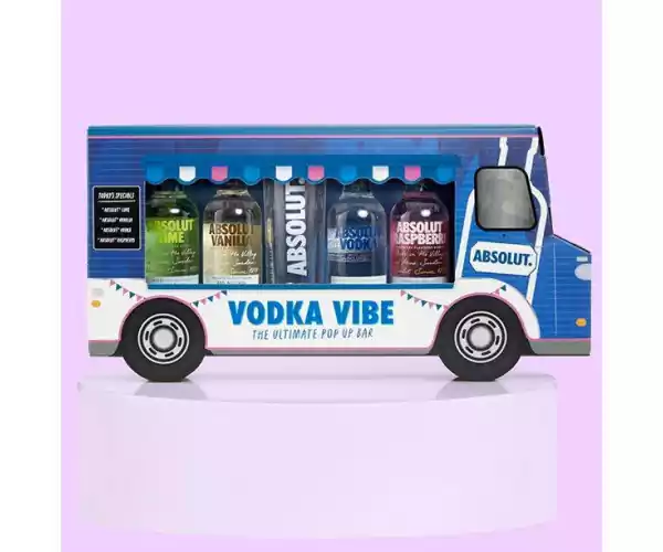Please drink responsible: https://www.drinkaware.co.uk/:Includes Absolut Original, Absolut Raspberri, Absolut Lime, Absolut Vanilia and Absolut shot glass