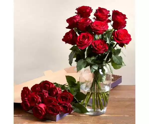 - Bouquet includes: 12 x Madame Red Rose 40cm.